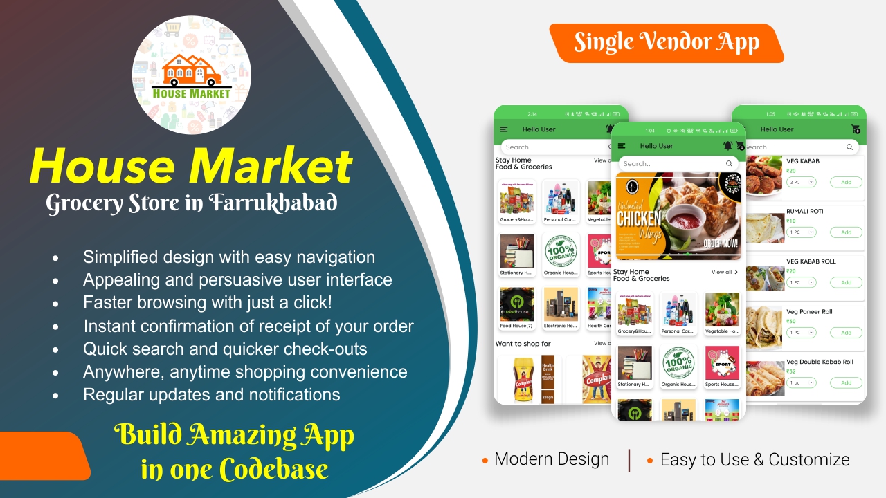 House Market delivered fresh Veggies, Fruits & Heathy Juices to the consumers. As it has observed that to buy vegetables & Fruits from the Local Vendor is very expensive.