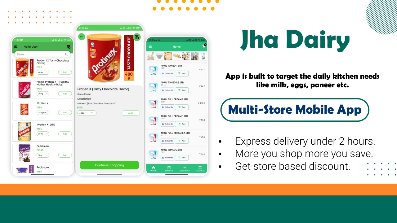 App is built to target the daily kitchen needs like milk, eggs, paneer etc.